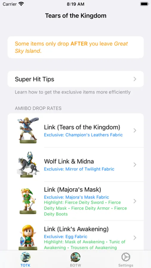This app make it easy to find out your amiibo rune rewards in Tears of the Kingdom & Breath of the Wild.