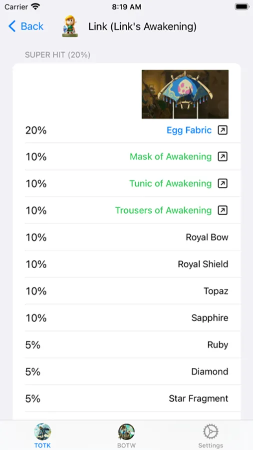 The amiibo is an ability in Tears of the Kingdom & Breath of the Wild. It is unlocked once Link unlocks 2 or 3 abilities. This app shows you the drop rates and introduces you to efficient way of getting all the exclusive items.