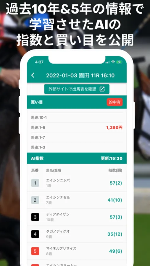 ・[New]中央競馬の全レースでAI予想の指数・買い目 を無料で公開!