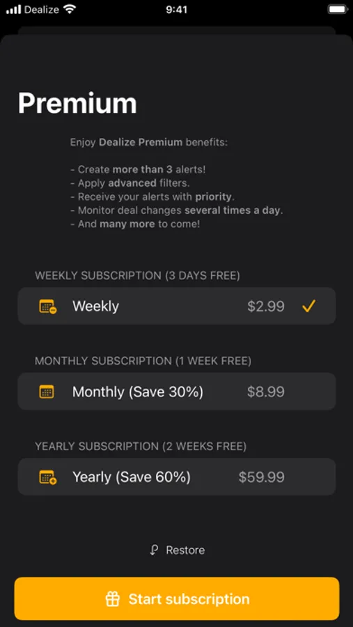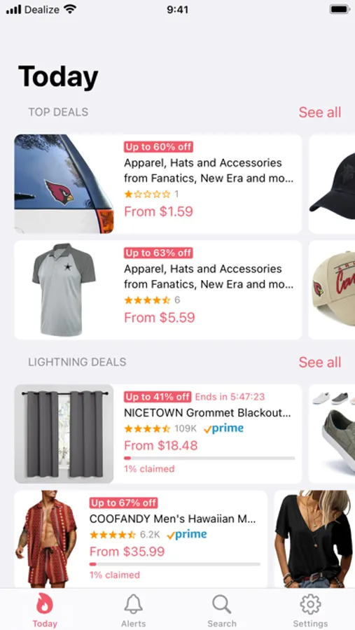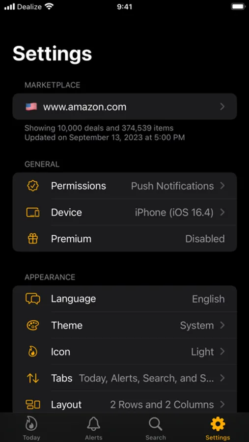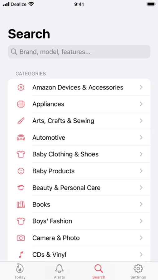 Dealize is a brand new way to buy smarter in Amazon and make you save a lot of money. Find the deals that suit your needs by applying detailed filters. Explore all the daily picks and find the best value for money. Create alerts for products containing the desired keywords in the title and you'll be notified when there are matching deals.