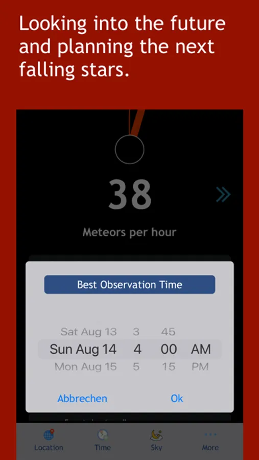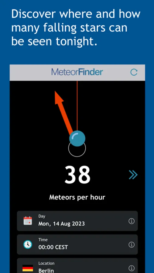 No matter where you are: MeteorFinder shows you at what time you have to look in which direction in the sky to see falling stars. It also shows you how many meteors you are likely to see.