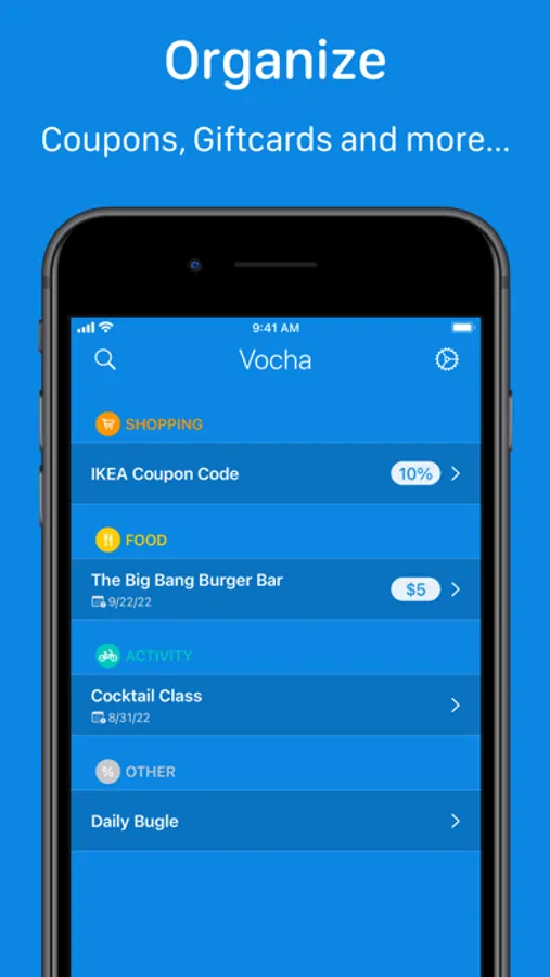 Vocha helps you organize and manage your discounts, coupons, referral codes, gift cards and more.