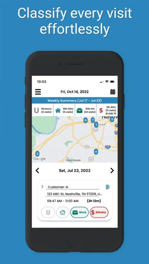 Our time tracker helps you easily organize your stops for your business billing. LocusB keeps business time separate from personal time, which makes it simple to have your billable time accurately displayed as needed.