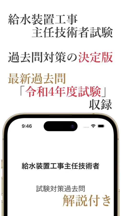 給水装置工事主任技術者試験・過去問題6年分(令和4年〜平成29年)を収録。解説付き。