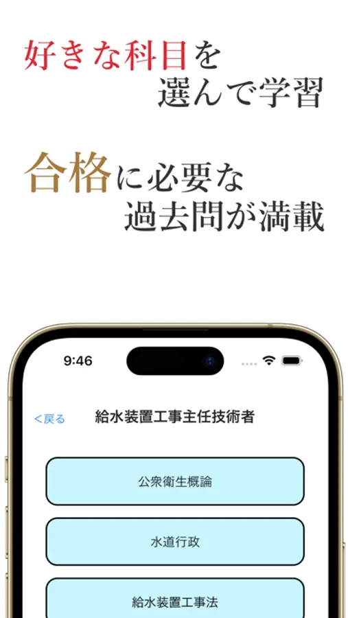 ・公衆衛生概論 ・水道行政 ・給水装置工事法 ・給水装置の構造及び性能 ・給水装置計画論 ・給水装置工事事務論 ・給水装置の概要 ・給水装置施工管理法