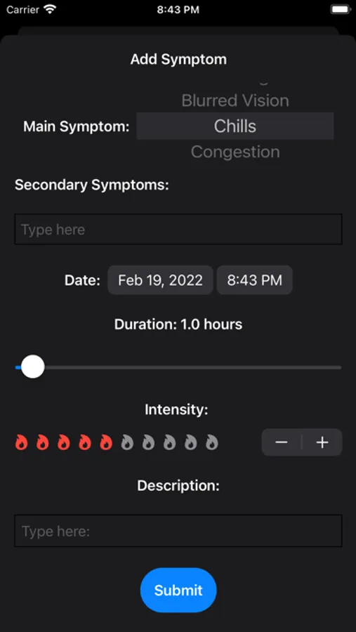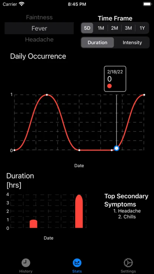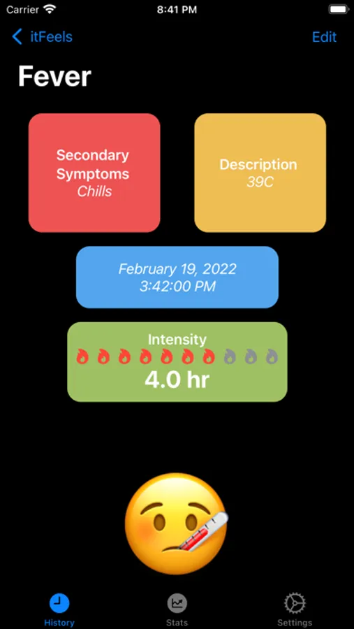 Add your symptoms from a preselected list, or customize them yourself. itFeels lets you keep track of your symptoms, see changes in graphs and export them as a spreadsheet to share. No need for an account, the data will only be stored in your device.