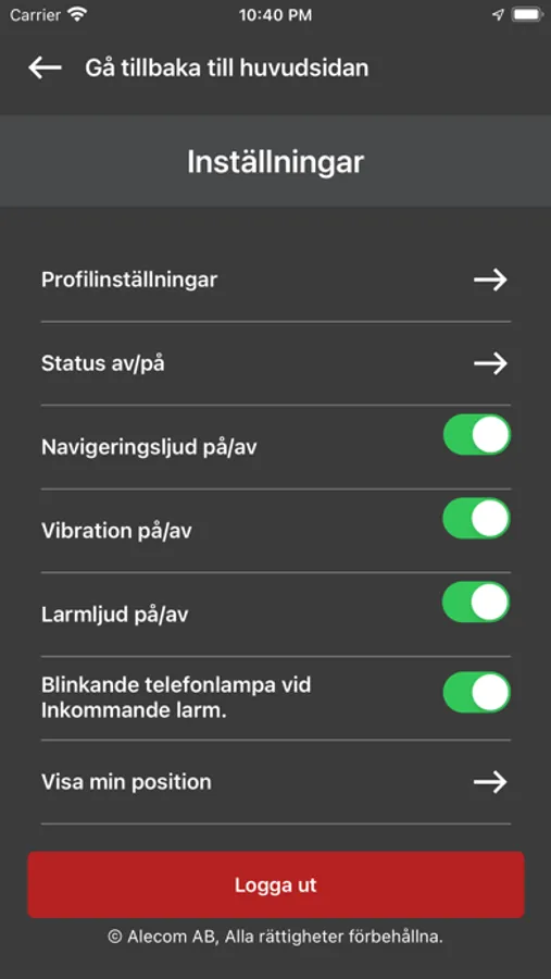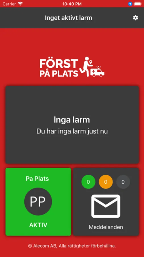 Larm går ut dygnet runt i appen, men du kan själv ange när du vill vara tillgänglig och kunna ta emot larm.
