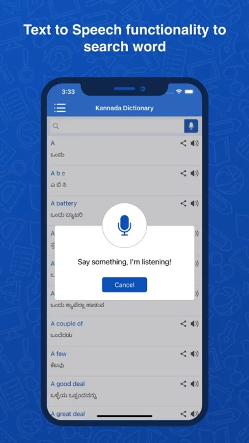 2- In Kannada Dictionary: Translator app, Users can search the word by their voice and read word meaning in both Kannada and English.