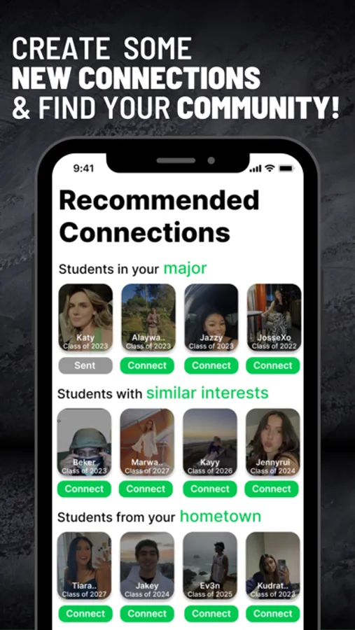 You can find others based on your expected graduation year, major(s), and based on groups you join or create which others can find, and with common interests find others to socialize with virtually and in person!