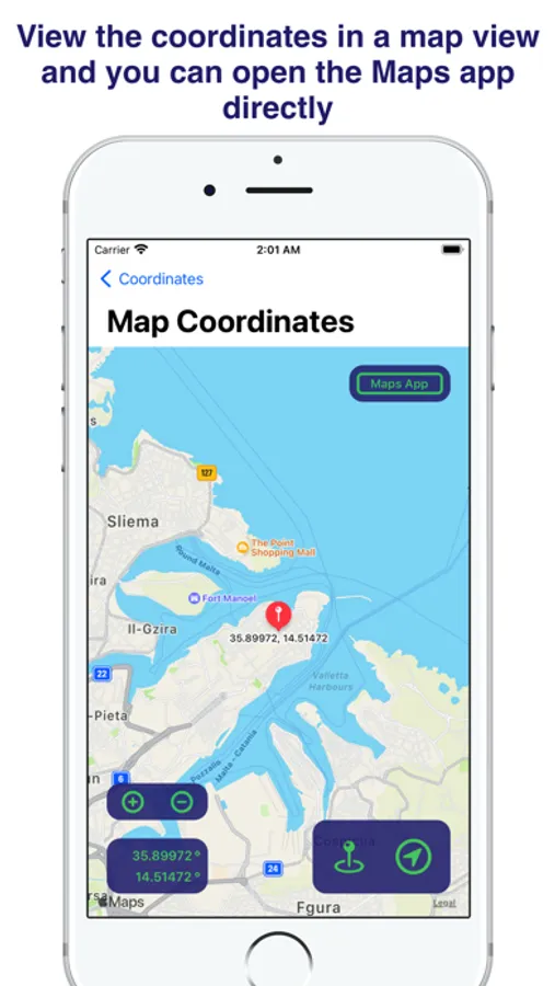 - See Coordinates on a Map (Maps App)