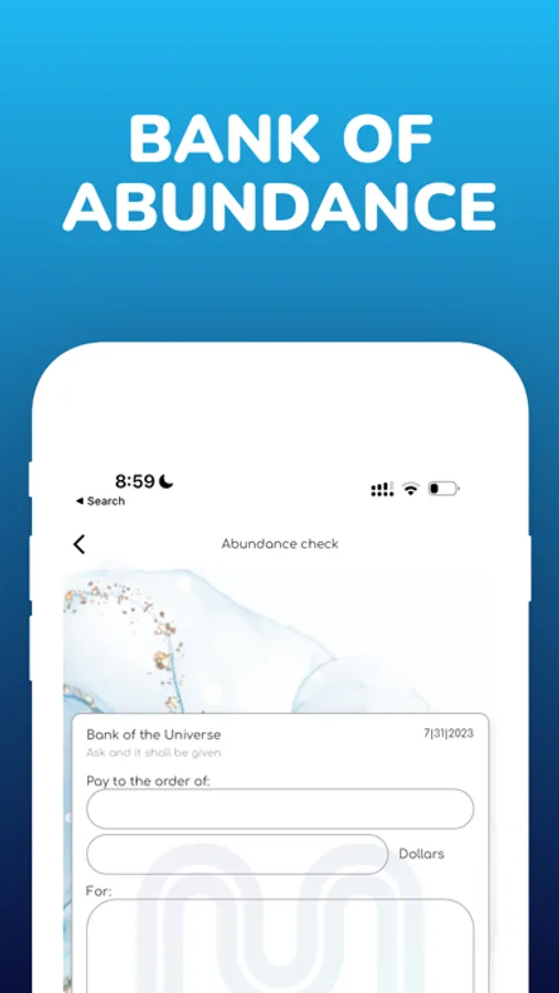 - **Abundance Checks**: Visualize your wealth by writing yourself or others virtual checks.