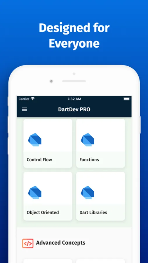 This app starts with an introduction to the Dart IDE, after which you will take a look at the various components of the Dart programming language. You will look at types and variables, and get to know the significance of collections and arrays in Dart. Once you've familiarized yourself with the initial components of Dart, you will see how flow of control and looping can be achieved by using if, else, and conditional expressions. Moving on to functions and objects, you will dig deeper into the concepts of object oriented programming to gauge the importance of constructors in Dart. You will then discover more about inheritance and mixins, seeing how they contain methods for use by other classes. Then you will learn about reflection and dart concurrency like isolates, streams and more. You will also learn about client side dart like using dart for web development. Then we will move forward to dart testing like unit testing etc.