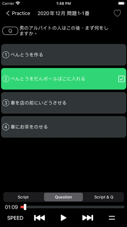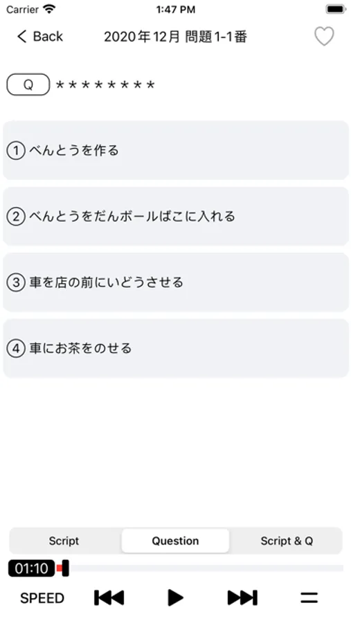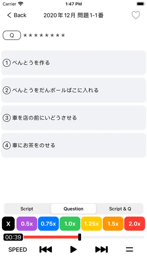 This is a Japanese listening practice app for the Japanese Language Proficiency Test N3.