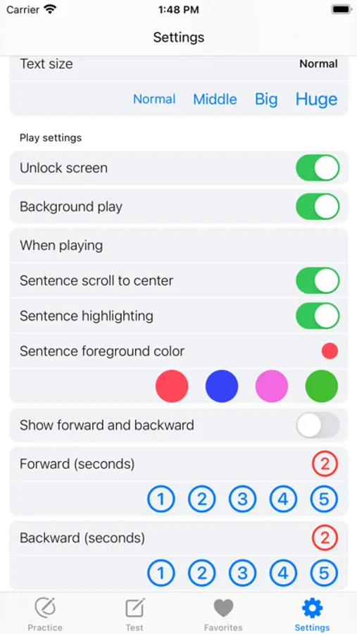 Forward and Backward the Audio(1, 2, 3, 4, 5 seconds can be choose).