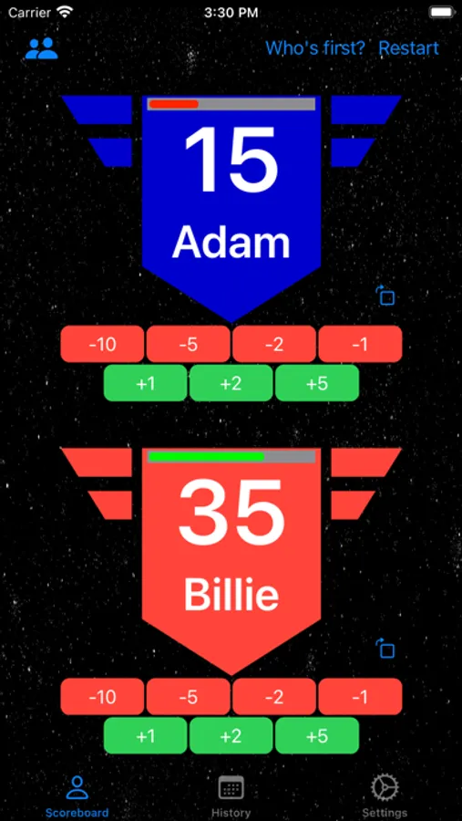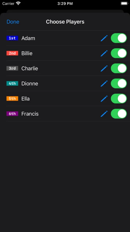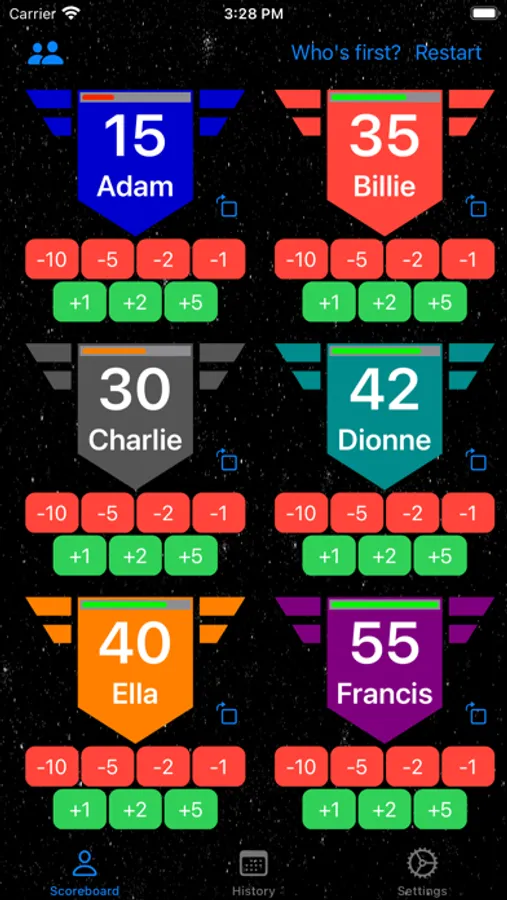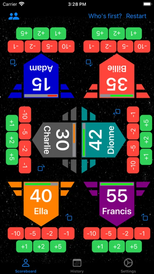 • Tap a player to zoom in and enter their score on smaller screen sizes