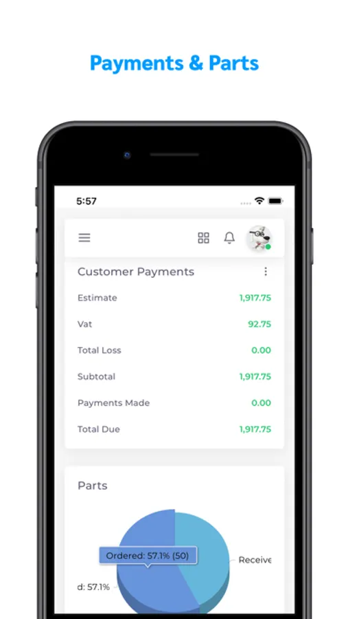 - The ability to order receive & return parts from the app
