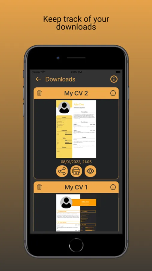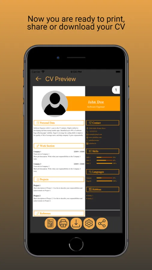* Once you find perfect appearance of your CV, you can share, print or download it to your device with an ease.
