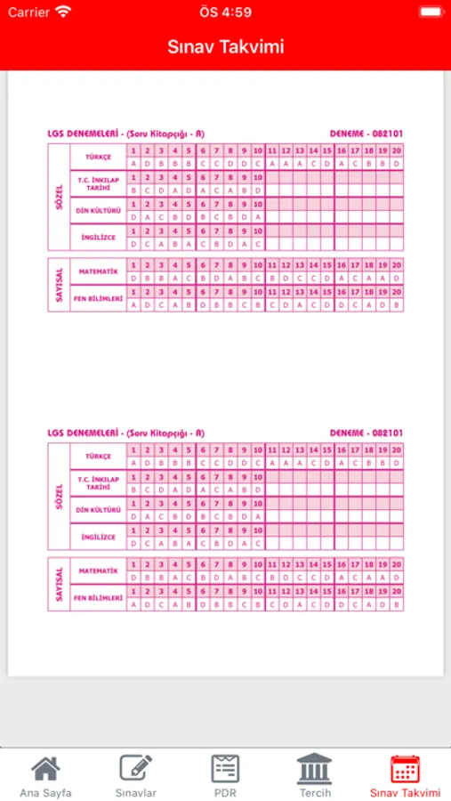 Farklı yayıncılar tarafından uygulanmış Türkiye geneli sınav sonuçlarına ulaşmak ve yayıncıların paylaştığı haber, duyuru, cevap anahtarı ve sınav takvimi gibi bilgilere ulaşmak için tasarlanmıştır.