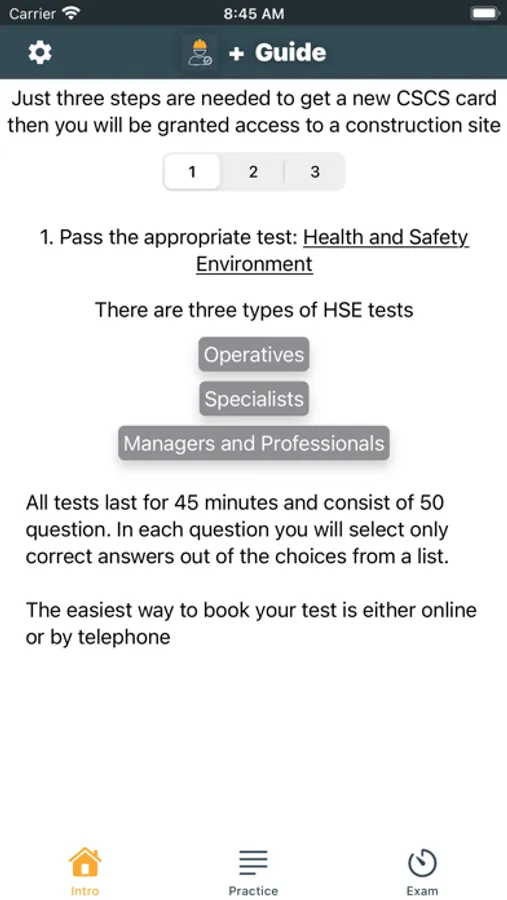Clear guidance on the fasted way to get a cscs card step by step. All in one app for passing various types of HSE exams. Increase your chances of passing by practising on real Health Safety & Environment test questions. Get trained, get prepped and get certified.