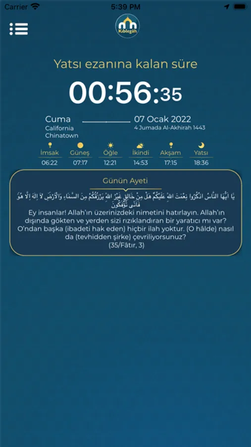 Kıblegâh Uygulaması, Namaz Vakitleri'ni takip etmenizi ve Kıble yönünü bulmanızı sağlar. Namaz vakitleri yaklaştığında sizi uyararak, namaz vakti girmeden önce hazırlanmanızı sağlar.