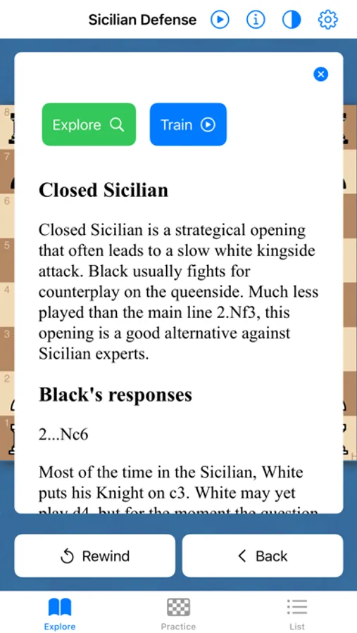 With a database of more than 3,000 openings, 500 descriptions and an intuitive interface that displays the strongest replies to most well-known variations, Chess Openings Trainer will get you playing the Sicilian Defense or the King's Gambit with confidence in no time!