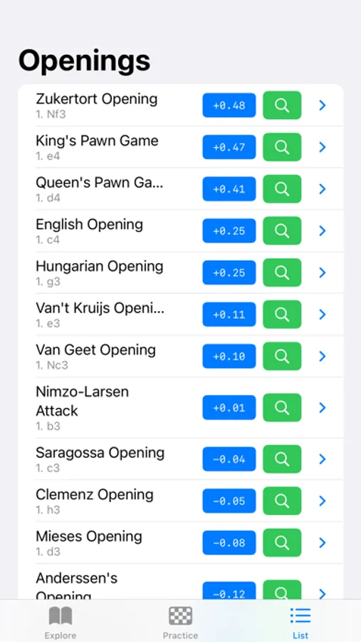 * Explore openings directly from the chess board, no side panels, no complicated statistics