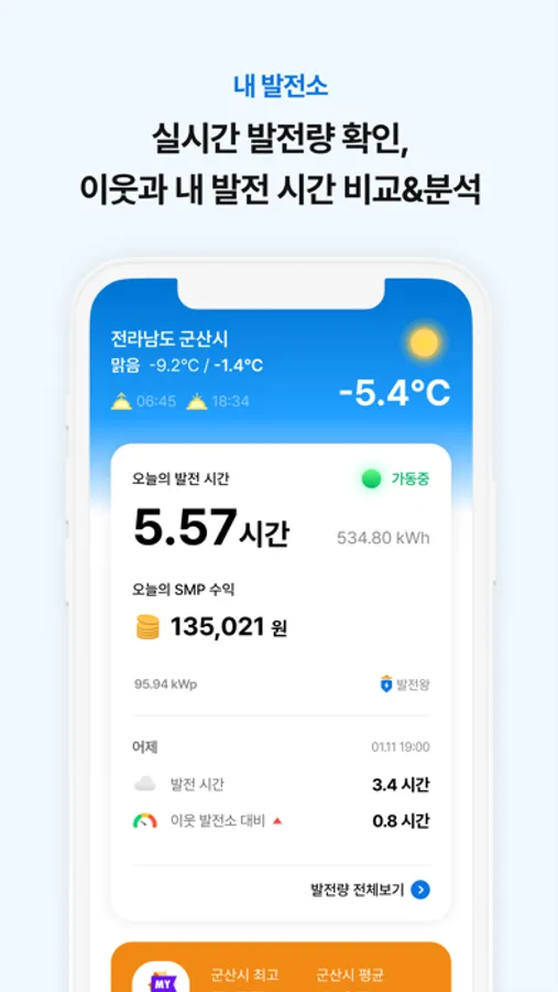 2. 내발전소 - 실시간 발전량 확인, 이웃과 내 발전 시간 비교 & 분석