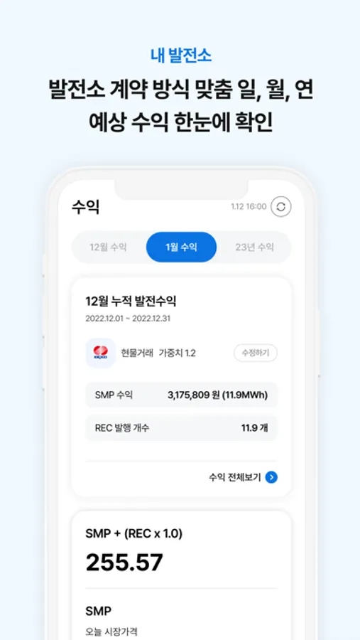 - 발전소 수익을 정확하게 계산해 드립니다. 한국형FIT, 장기계약, 현물거래의 정확한 수익을 발전왕에서 확인하세요.