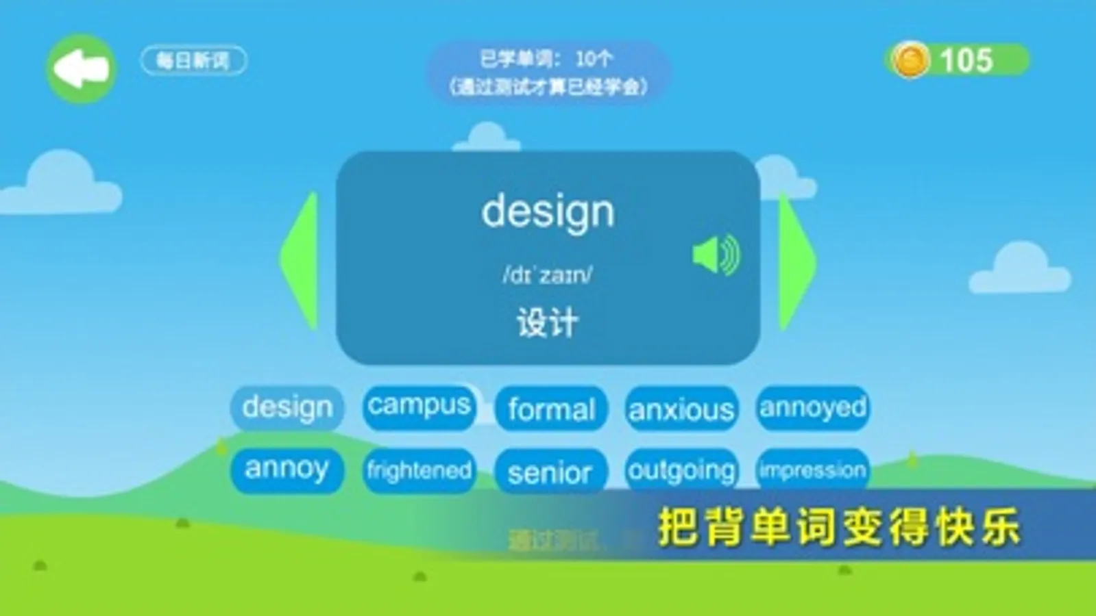 学英语,背单词很重要也很枯燥。即便可以通过大量阅读认识许多词汇,也更多是停留在认识的层面,很难听说读写全面掌握。因此,我们通过游戏来帮助您背单词,让您在开心的游戏中,不知不觉就完成了这个原本枯燥的过程。