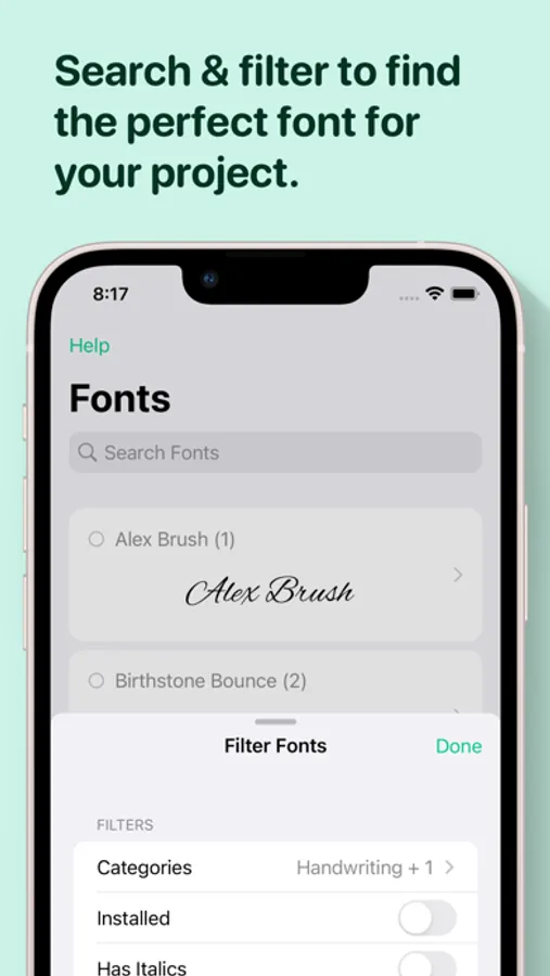 Browse the font book or quickly search and filter to find the perfect font or design for your project.