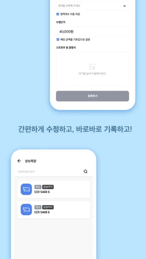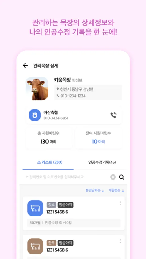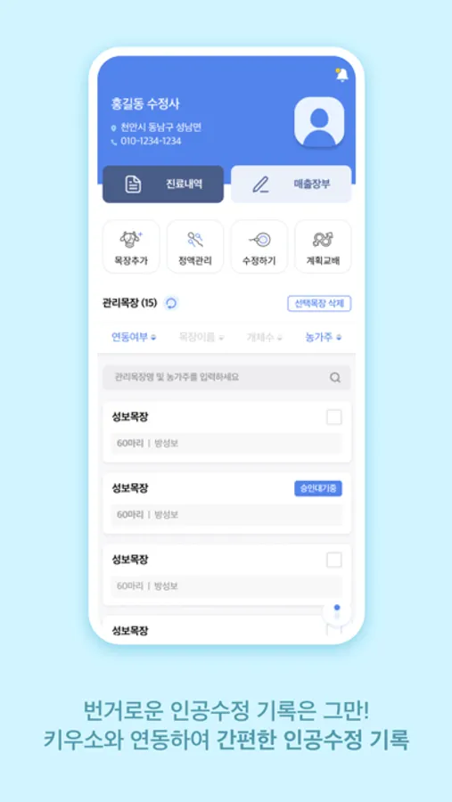 한우/젖소농가 대상 인공수정사를 위한 인공수정기록관리 앱서비스입니다.
