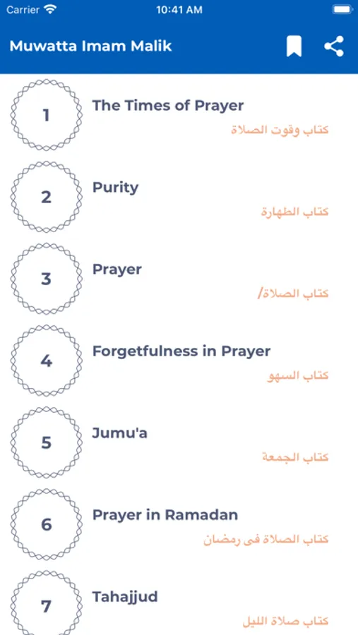 Tha app contain hadith for The Times of Prayer, Purity, Prayer, Forgetfulness in Prayer, Jumu'a, Prayer in Ramadan, Tahajjud, Prayer in Congregation, Shortening the Prayer, The Eclipse Prayer and many more.