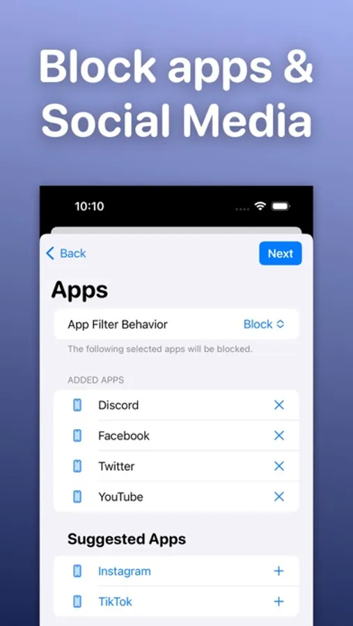 Pick the apps and website you would like to block, set up the app & website blocking, and you're all good to go!