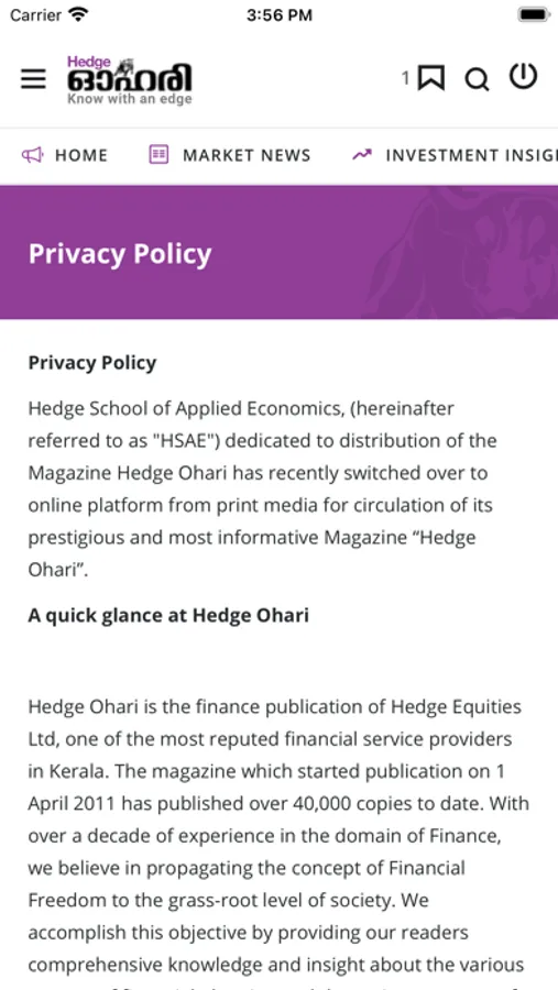 Hedge Ohari is the first Finance Journal in Malayalam that provides its readers with comprehensive knowledge and insight about Financial Planning that helps them achieve Financial Freedom.