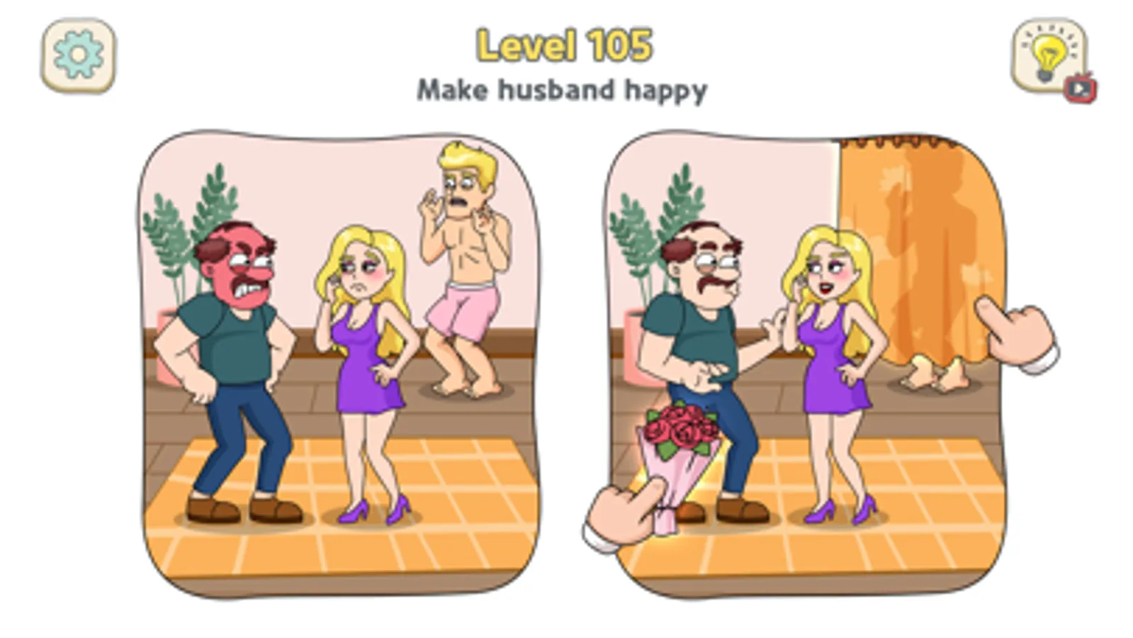 Moving your finger to displace 3 objects in the correct position on the picture, but make sure they're in the right order as well. Solving an unending sequence of bizarre problems where discovering the solution will blow your mind – it's the funny and creative animations that each way triggers will keep you returning to the game for more brain-teasing levels. Sometimes there are misleading items, you need to open your mind to solve the puzzles.