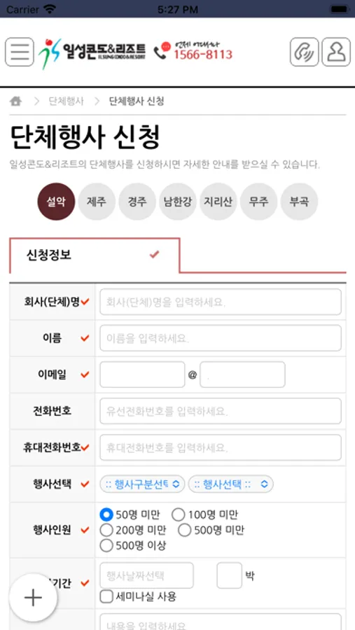 일성리조트 직영체인의 통합 예약을 진행 합니다