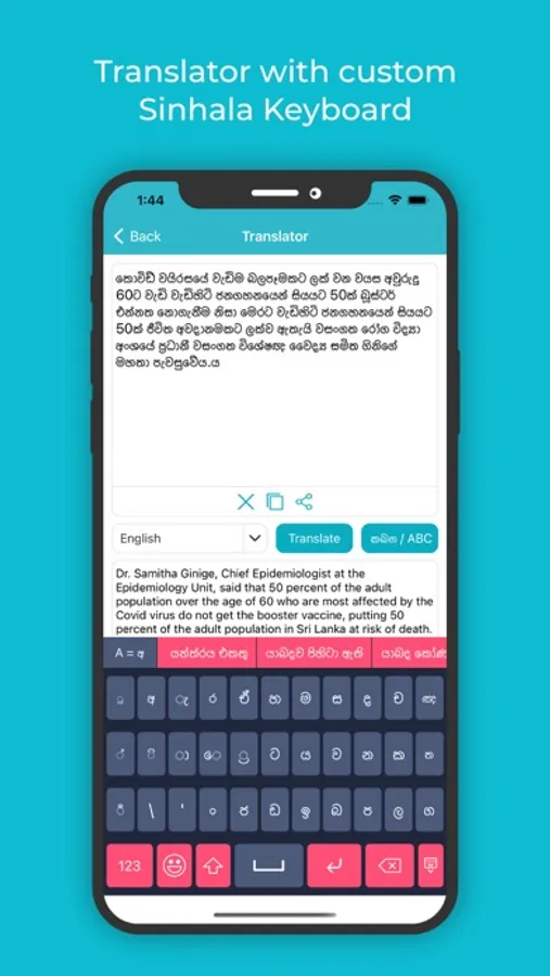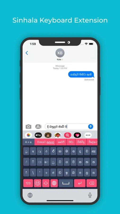 • Another important feature in the Sinhala keyboard and Translator, and one that makes this the best Sinhala keyboard and Translator for iOS is its adaptability with apps. Use the keyboard extension feature to type Sinhala directly into any app.