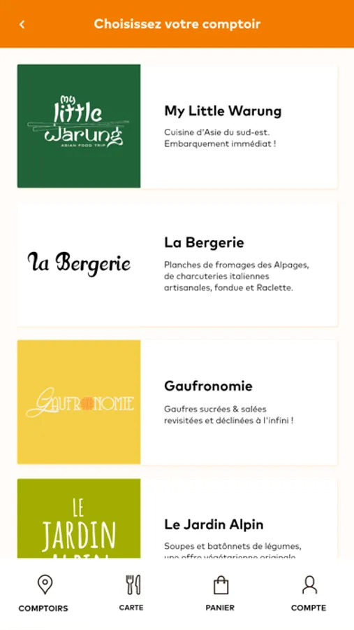 Profitez de toute l'expérience digitale au sein d’un lieu de vie et de restauration pour petits et grands ! Avec l'application mobile Camp De Base, trouvez votre Camp De Base le plus proche de vous, découvrez nos comptoirs, la carte et passez commande ! Pratique : votre cagnotte Camp de Base dans l’application vous permet de payer simplement et rapidement dans tout le food court !