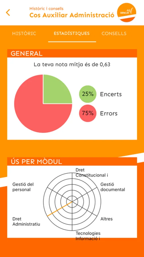 L'objectiu que cerquem amb aquesta aplicació és posar al teu abast eines que facilitin la teva tasca d'estudi i l'assimilació de continguts. Per aquest motiu hem dissenyat un entorn molt visual, que facilita la retenció. A més a més, a la secció "Històric i consells" podràs veure el teu històric (tests realitzats, notes que has tret, preguntes que has fallat), detectar les teves àrees de millora i, seguint les indicacions que et donem a l'apartat de "Consells", ser conscient de com has de treballar.