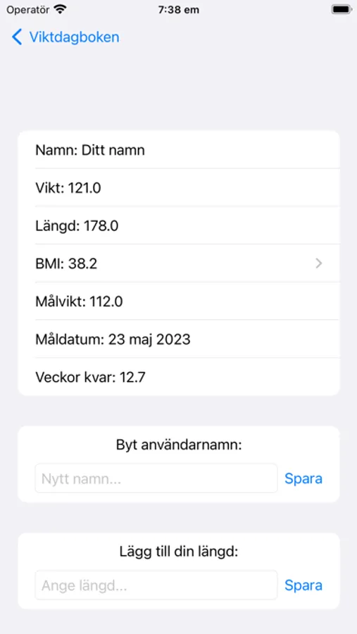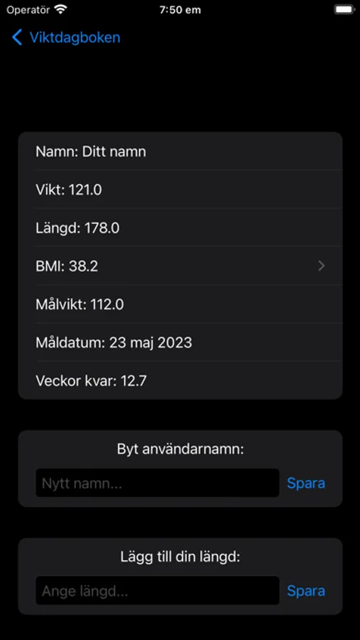 - Dokumenterar och visar statistik över din viktutveckling som också är skyddad bakom en inloggning.