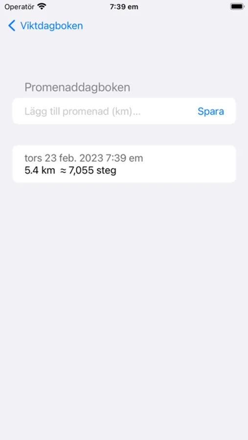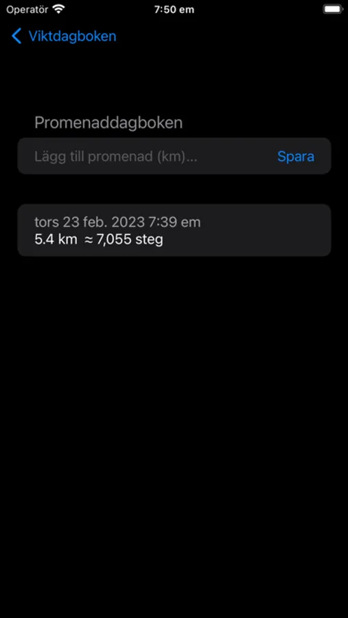 - Dokumenterar promenader och visar statistik över ungefärligt antal steg.