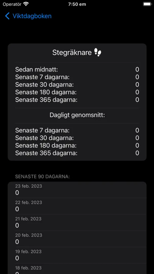 - Stegräknare (endast iPhone och kräver tillstånd att läsa stegdata från appen Hälsa).