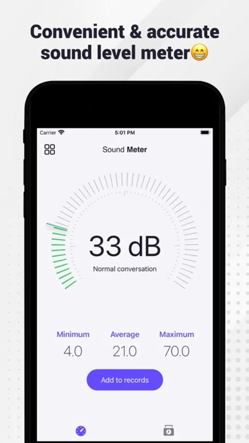 Sound Meter tracker is a powerful application which will allow you to measure noise with your phone microphone. It shows real-time noise value in decibels (dB).