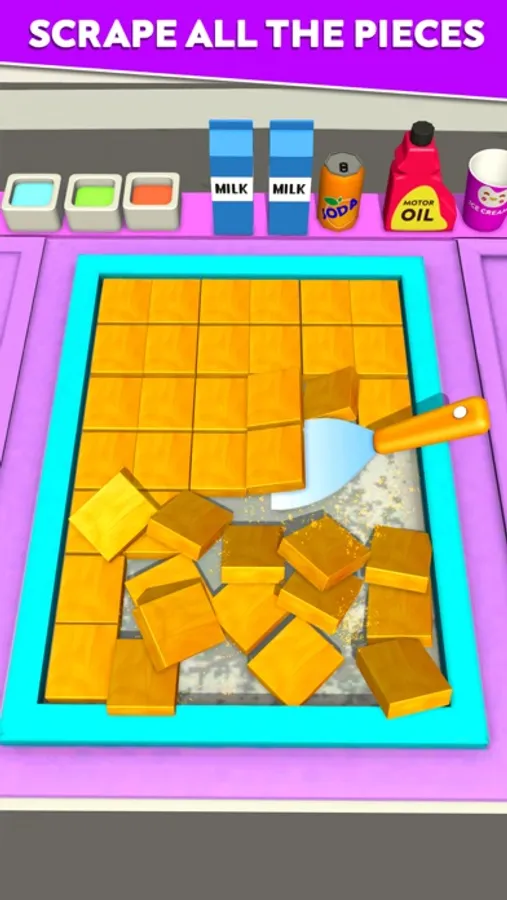 Experience the satisfying ice making gameplay. Add different flavours of liquid on the freeze pan and freeze it, cut it to small pieces and scratch it from pan and serve it to the customer.
