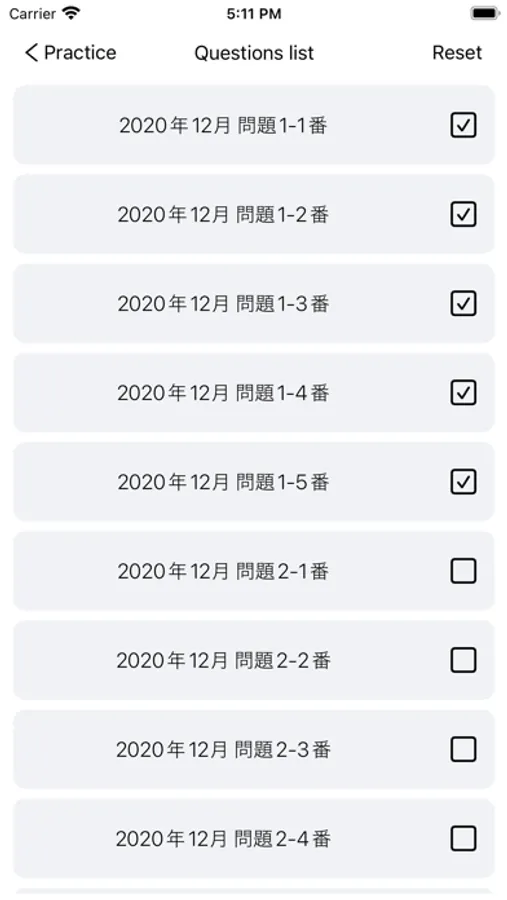 Custom practice mode and practice progress visualization.