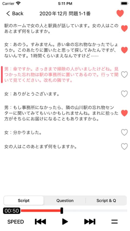 This is a Japanese listening practice app for the Japanese Language Proficiency Test N2.