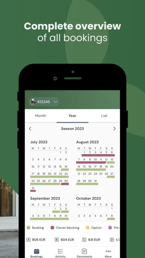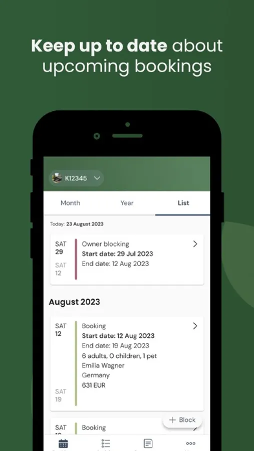 Get an excellent overview of your booking calendar in a month, year or list view depending on your specific needs.
