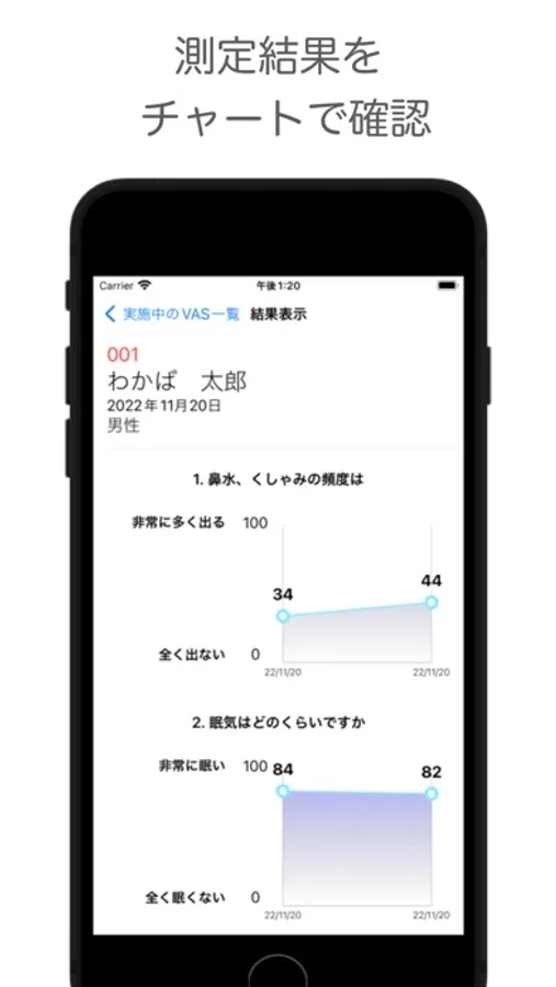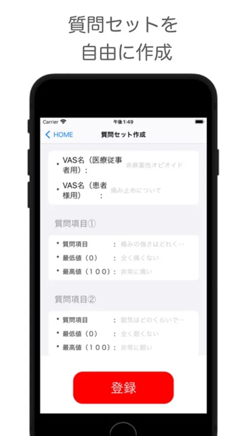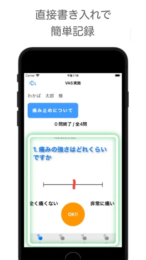 VAS for Clinicalは、Visual Analogue Scale(VAS)によって主観的な変化を記録するiPad用のアプリです。