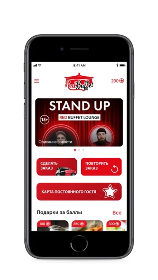 С помощью нашего приложения Вы можете сделать предзаказ в ресторане или заказать доставку на дом.