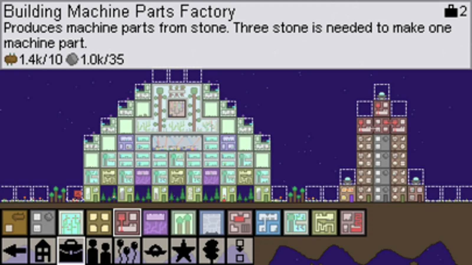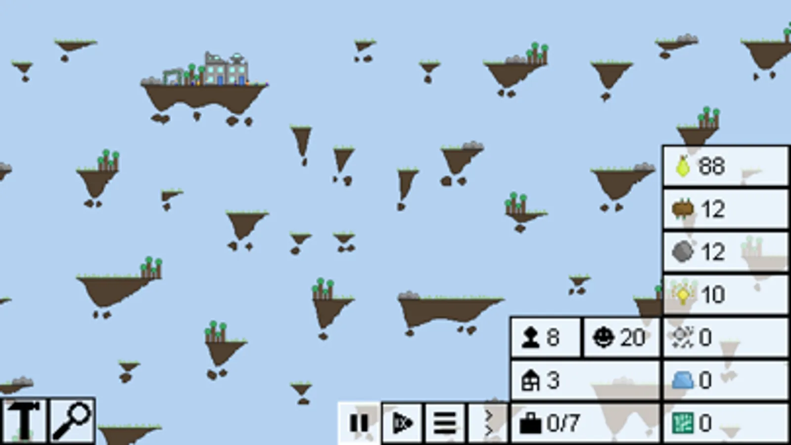 It's 2142, and earth is a wasteland. You built a space ship, but now your food is running out. Fortunately, you see a world just in time. It is a bit small, but certainly better than nothing. You build some farms and houses, and fulfill the basic needs of your citizens. Then, it's time to build the true city of the future! Research advanced technology and make your city grow to a huge metropolis. When your tiny world gets too small, fly to other worlds with space ships, or even build teleporters.
